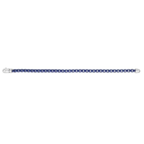 Sterling Silver Men's Blue E-Coating 8.5" Box Link Bracelet with Lobster Clasp.