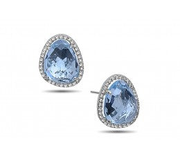 These enchanting rose cut bean blue topaz stud earrings are enclosed in shimmering diamond halos, set in 14K white gold and feature 4.76 cts blue topaz and 0.16 cts diamonds.